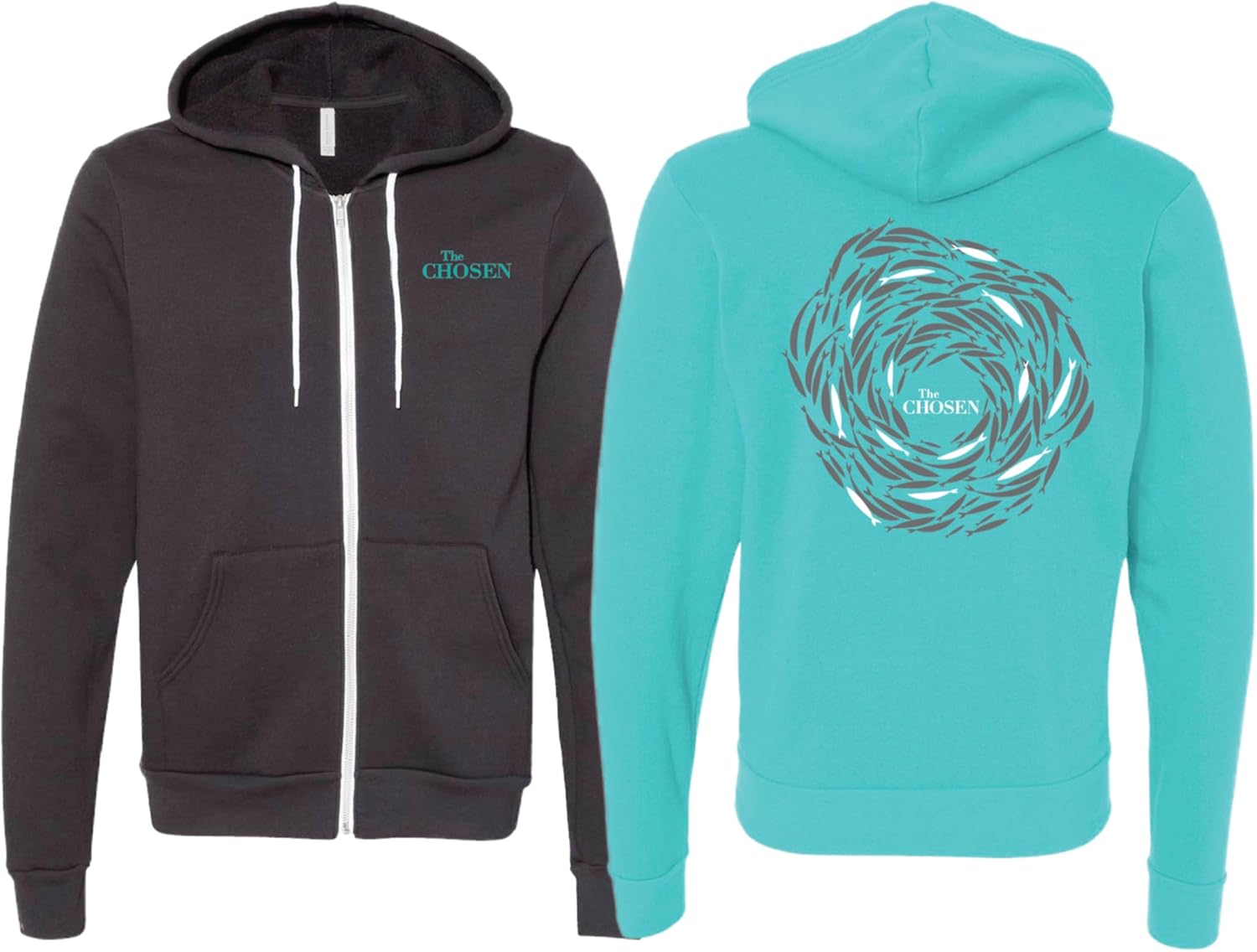 Show the world what it means to live against the current with The Chosen: Against the Current Hoodie. Inspired by the show’s iconic image—thirteen fish swimming upstream—this hoodie represents more than a symbol. It’s a statement of faith, resilience, and the calling to follow Jesus even when it’s not easy. Crafted from 52% Airlume combed and ring-spun cotton and 48% polyester fleece, this premium BELLA+CANVAS hoodie offers lasting comfort and quality. The white cord drawstring, ribbed cuffs and waistband, and front pouch pocket add style and practicality, while the soft midweight fleece keeps you cozy season after season. Whether you’re watching The Chosen, attending church, or simply living out your faith day by day, this hoodie helps you share your story—the story of going against the current. This officially licensed hoodie makes a meaningful gift for any Chosen fan or believer who wants to wear their faith with purpose.