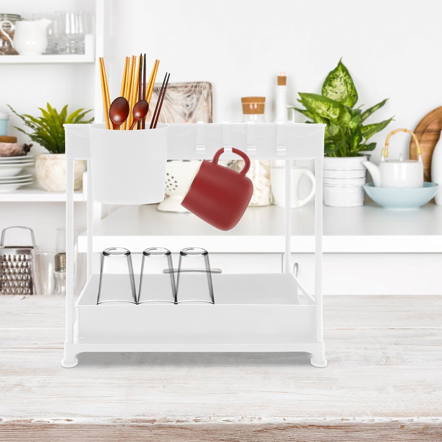 Package List 1 x set of kitchen organizer Features -Product Info:Pull the rack -Material:PP - Size: 40.00X36.00X23.00cm/15.72X14.15X9.04in - Color: White - It is designed to be pulled out basket, which is more convenient to use than other normal storage organizers under sink organiser. - Layered design of this 2 tier kitchen storage rack brings the larger capacity, the material makes it strong and . - This kitchen storage rack uses a guardrail design to prevent tableware from accidentally falling, use with confidence under sink organizers and storage. - Hollow design, good ventilation and drainage. Suitable for kitchen, bathroom, laundry room and other places. under the sink organizers - PP material, strong and . Large load-bearing capacity, this kitchen storage rack can hold heavy items. Goods Descriptionkitchen under sink organiser This kitchen storage rack is a good helper for kitchen.under the sink organizer kitchen Do you want to have a kitchen storage rack to store your seasoning bottles and other items? Then, our storage rack is carefully prepared for you.under sink organizers Enough capacity to store many seasoning bottles and kitchen supplies