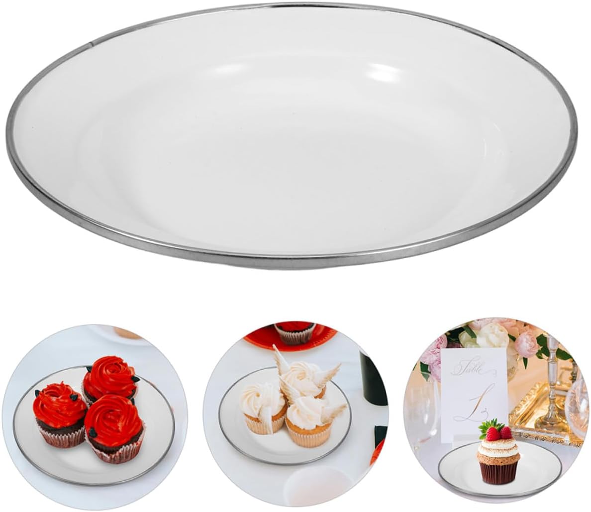 Package List 4 x enamel plates Characteristics -Product Info:Enamel disc -Size:22.00X22.00X3.00cm/8.65X8.65X1.18in -Material:Enamel -Color:White - Fine workmanship with attractive appearance, smooth line, the plate is delicate and vintage dish storage plate. - The material is sturdy and light, which is wear resistance and practical for the long time use. -Designed for convenience, these plates are portable and easy to store, making them ideal for use in homes retro style plate. - The plate is suitable for home, bakery, cake shop, food store, office, shopping mall, etc enamel dinner plate. -The craftsmanship of these plates a smooth and flat surface, providing a comfortable feel that enhances the using experience enamel plate.Goods Descriptionvegetables plate This plate is good for those who appreciate both style and functionality.enamel dinner plates The thickened enamel construction it is robust and , while its easy-to-clean surface makes maintenance a breeze.fruits plate The Pure White Thickened Snack Enamel Plate stands out with its classic white color and appeal