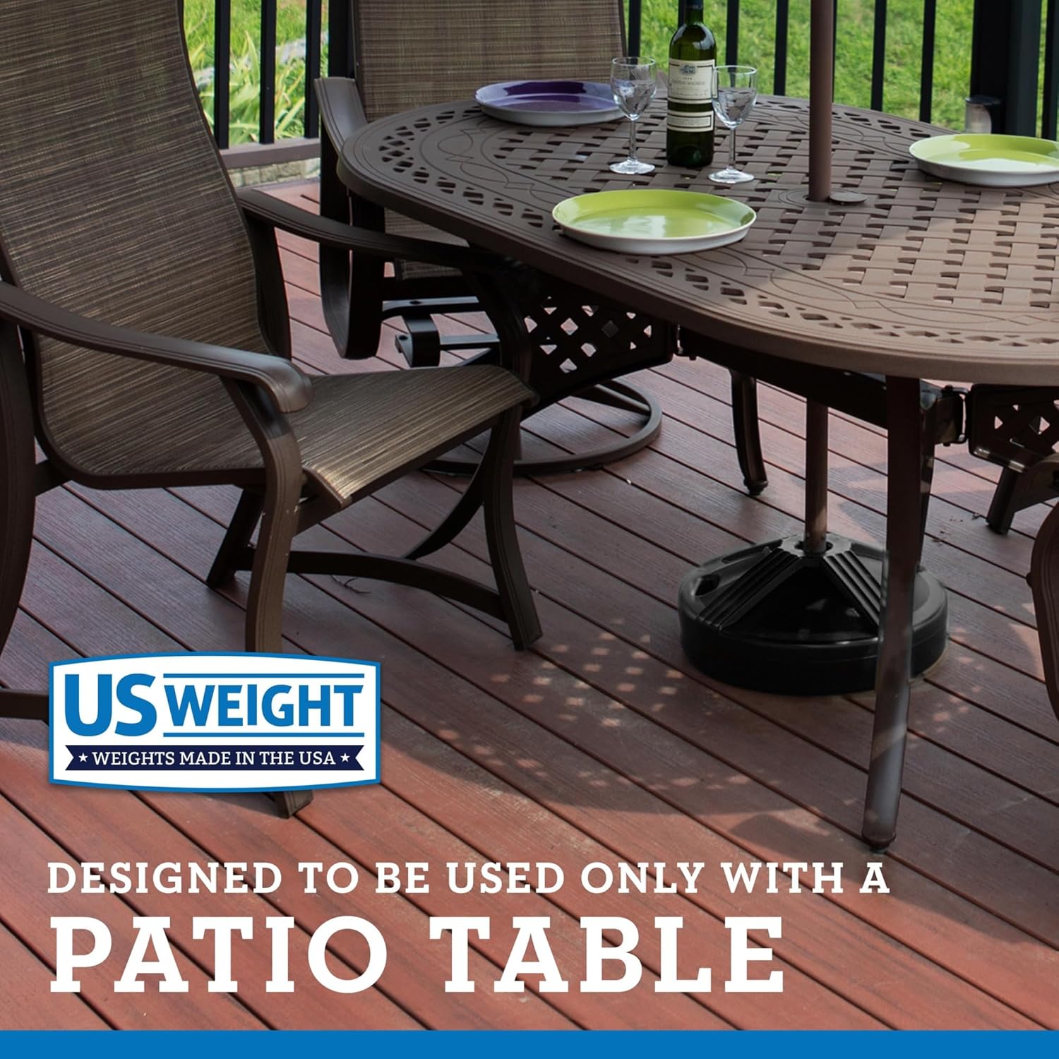 Support your patio umbrella without worrying about cracking and fading. For more than 20 years, US Weight has designed and produced quality innovations made in the United States of America. The US Weight Umbrella Base is crafted with a U.V. stabilized polymer that will not rust or dent and can withstand the elements in any weather climate. The base accommodates 1" and 1.5" poles and should be used with a patio table. This base can either be prefilled with 50 pounds of a solid concrete core or empty and ready to be filled with sand or gravel. The umbrella base can easily be transported or relocated using the EZ Grip handle. The umbrella bases come in a variety of colors and prefilled or empty options.