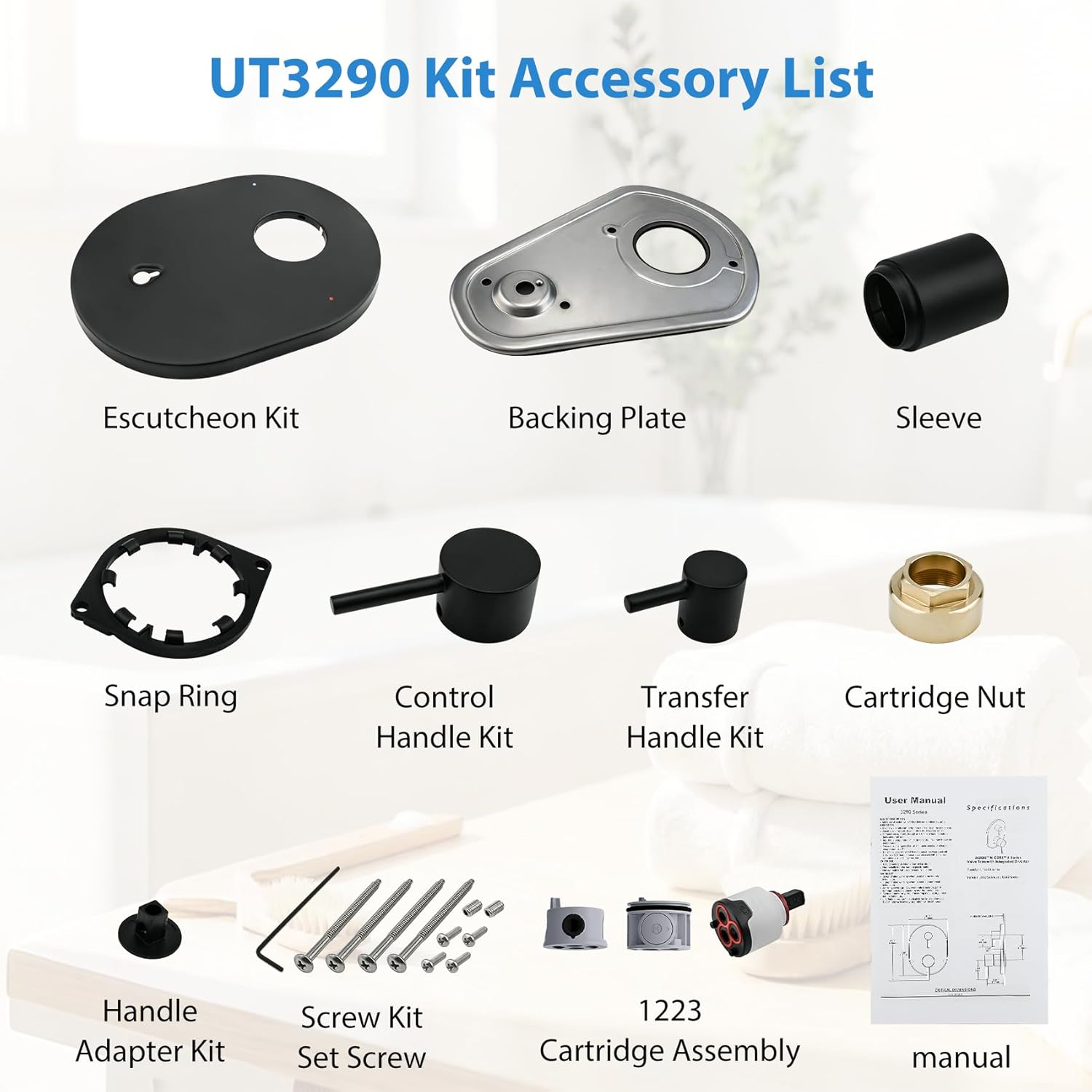 | Included Components | (Matte Black) ut3290BL Handle Panel Set, 1213 Valve Cartridge, User Manual |