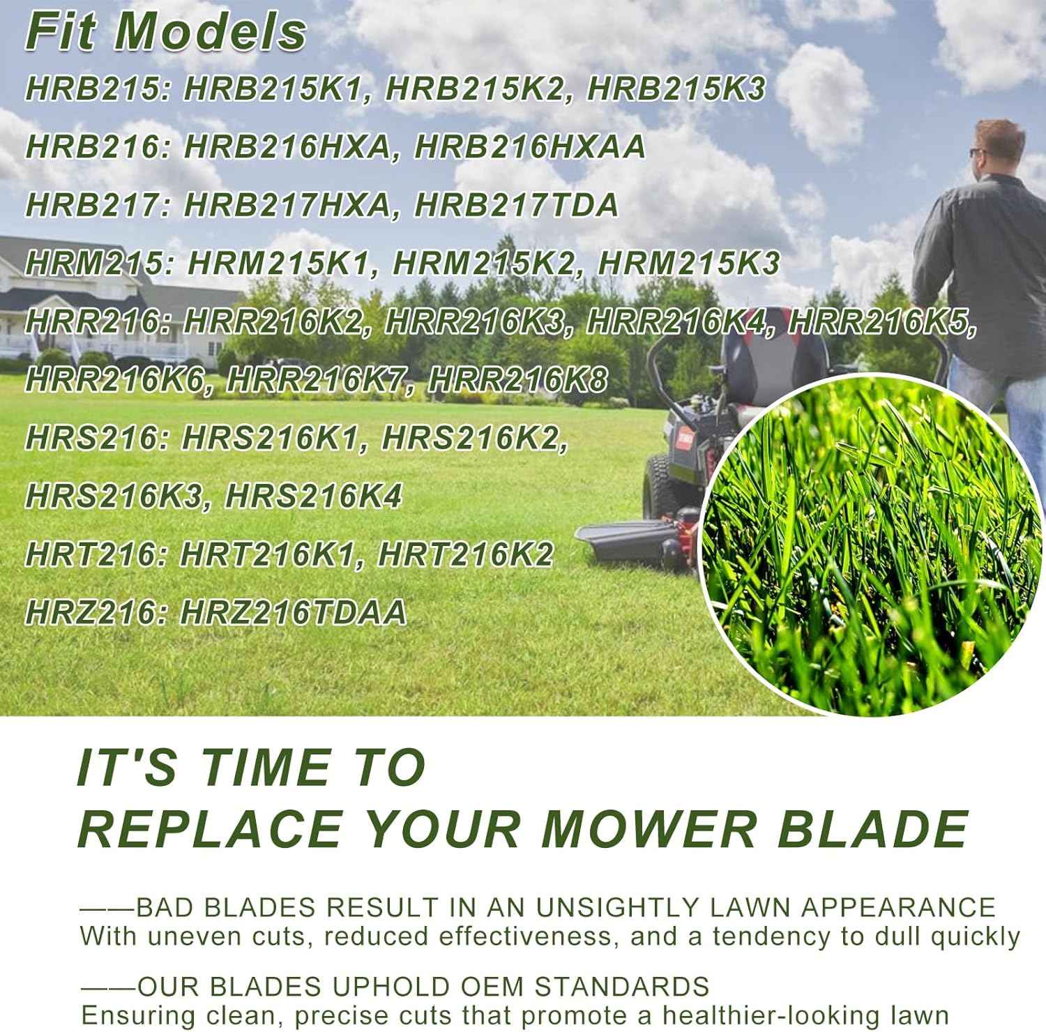 HRR216 Blade:72531-VE2-020 one upper and 72511-VE1-020 one lowerFits:HRB215 PXA, HRB215 SXA, HRB215K1 PXA, HRB215K1 SXA, HRB215K2 HXA, HRB215K2 PXA, HRB215K2 SDA, HRB215K2 SXA, HRB215K3 HXA, HRB215K3 HXA/A, HRB215K3 SDA, HRB215K3 SXA, HRB215K3 SXA/A, HRB215K4 HXA, HRB215K4 HXA/A, HRB215K4 SDA, HRB215K4 SXA, HRB215K4 SXA/A, HRB216 HXA, HRB216 HXAA, HRB216 TDA, HRB216 TDAA, HRB216 TXA, HRB216 TXAA, HRB217 HXA, HRB217 TDA, HRM215 PXA, HRM215 SXA, HRM215K1 PDA, HRM215K1 PXA, HRM215K1 SDA, HRM215K1 SXA, HRM215K2 HXA, HRM215K2 PDA, HRM215K2 PXA, HRM215K2 SDA,HRM215K2 SXA, HRM215K3 HXA, HRM215K3 HXA/A, HRM215K3 PDA, HRM215K3 SDA, HRM215K3 SXA, HRM215K3 SXA/A, HRM215K4 HXA, HRM215K4 HXA/A, HRM215K4 PDA, HRM215K4 SDA, HRM215K4 SXA, HRM215K4 SXA/A, HRR216K2 PDAA, HRR216K2 SDAA, HRR216K2 TDAA, HRR216K2 TKAA, HRR216K3 PDA, HRR216K3 TDA, HRR216K3 VXA, HRR216K4 PDA, HRR216K4 TDA, HRR216K4 VXA, HRR216K5 PDAA, HRR216K5 VKAA, HRR216K5 VXAA, HRR216K6 PDAA, HRR216K6 VKAA, HRR216K6 VXAA, HRR216K7 PDAA, HRR216K7 VKAA, HRR216K7 VXAA, HRR216K8 PKAA,HRR216K8 VKAA, HRR216K8 VYAA, HRS216 PDA, HRS216 SDA, HRS216K1 PDA, HRS216K1 PDAA, HRS216K1 SDA, HRS216K1 SDAA, HRS216K2 PDAA...Easy to install: If you have never replaced the blades on your mower, it's easy to do (make sure you disconnect the spark plug first). You will need a ratchet with an extended arm for leverage to remove the existing blades. The new blades go on easily, but a torque wrench is recommended when putting them on to make sure to tighten the bolts to the proper tension for safety.Air Filter:Replace for Part number: 17211-ZS9-A02Spark Plug:Replace for Part number: 98079-55846 and for NGK BPR5ES.Compatible with the following model :EB2500C, EB3000C, EB3000CK1, EB3000CK2, EM2500C, EM3000C, EU3000iS & EU3000iS1 Model Generators