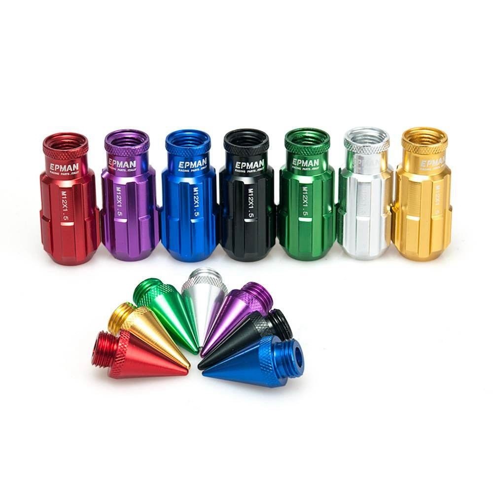 Default Color: Blue (Please leave us a message if you need other colors, thanks) Available Color:Red,Blue,Gold,Black,Purple,Green,Silver Features: JDM Racing Style Race Car Wheel Lug Nuts Key Diameter:24MM Quantity: 20pcs lug nuts + 1 pcs key Size: M12 * P1.5 Overall length: 79mm The other size,please check the picture. Over sized 60 degree taper seat for better contact area Condition: 100% brand new in box,never used or installed. FITMENT: M12 x P1.5: For Honda , For Toyota , for Mitsubishi , for Mazda , for Ford , for KIA , for Hyundai , for Chevrolet , for Buick Only fit on Tuner wheels or Stock wheels with Acorn, Conical or Tapered Seats Will NOT fit on wheels with Mag Seats or Ball Seats NOTICE: COLOR MAY BE DIFFERENT DUE TO PRODUCTION BATCH AND PHOTO LIGHTING. Please check the size of nuts on your wheels before buying.Easy Install. Made to fit many aftermarket wheels and OEM alloy wheels. Fit for most tuner wheels and some stock wheels with acorn, conical, or tapered seats. ** IMPORTANT INFORMATION ** Please double check the item size in our photo and description, to make sure the fitment, thanksMinor modifications or adjustments maybe needed for some of our products. We sell DIY (Do It Yourself) Items with a few exceptions. Professional Installer Is Highly Recommend, No Installation Instruction Included.