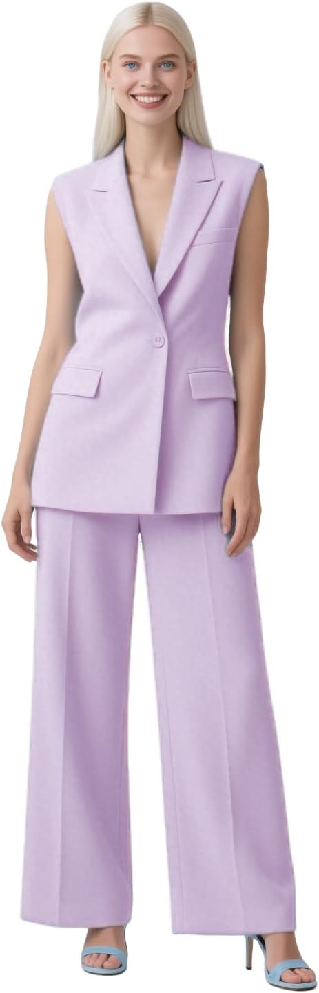 Women's 2 Piece Suiting Set,Vest and Wide Leg Pants Suit,Business Office Outfit,sleeveless vest blazer and pants set,vest suit set,Women's 2 Piece Suit Set,Sleeveless Blazer Jackets for Women/V Neck Vests for Women,Work Office Clothes for Women