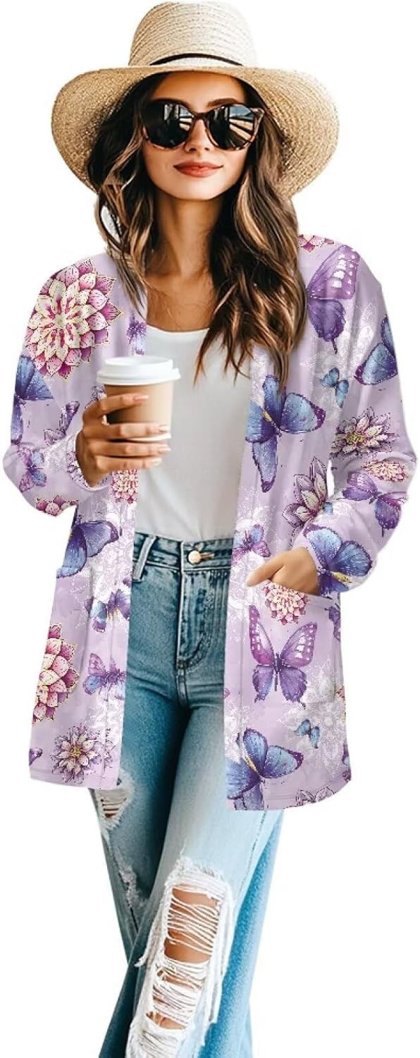 Women's Long Sleeve Cardigan Jacket Lightweight Soft Stretchy Open Front Outerwear with Pockets Fall Winter Coat Size S-2XL Comfortable Material: Women cardigan is made of polyester and spandex fabric, which is light, comfortable, casual and elastic, making you feel comfortable in warm weather. Beautiful Appearance: The design of the front placket is convenient for you to put on and take off, with pockets for you to carry some small items, which is beautiful in design, not bloated, and makes you look decent and elegant. Fashionable Wear: Our cardigans are versatile and can be easily paired with jeans, tights, high heels and boots. You can wear it to work, date, party, exclusive, shopping and daily life. Highly Adaptable: This V-neck cardigan has moderate weight, good drape, simplicity and comfort. It is warm enough, suitable for spring, autumn and winter, suitable for your various wear, and makes you simple, elegant and casual. Warm Tips: Please wash it with clothes of similar colors, wash it in cold water, do not bleach it, and do not iron it.