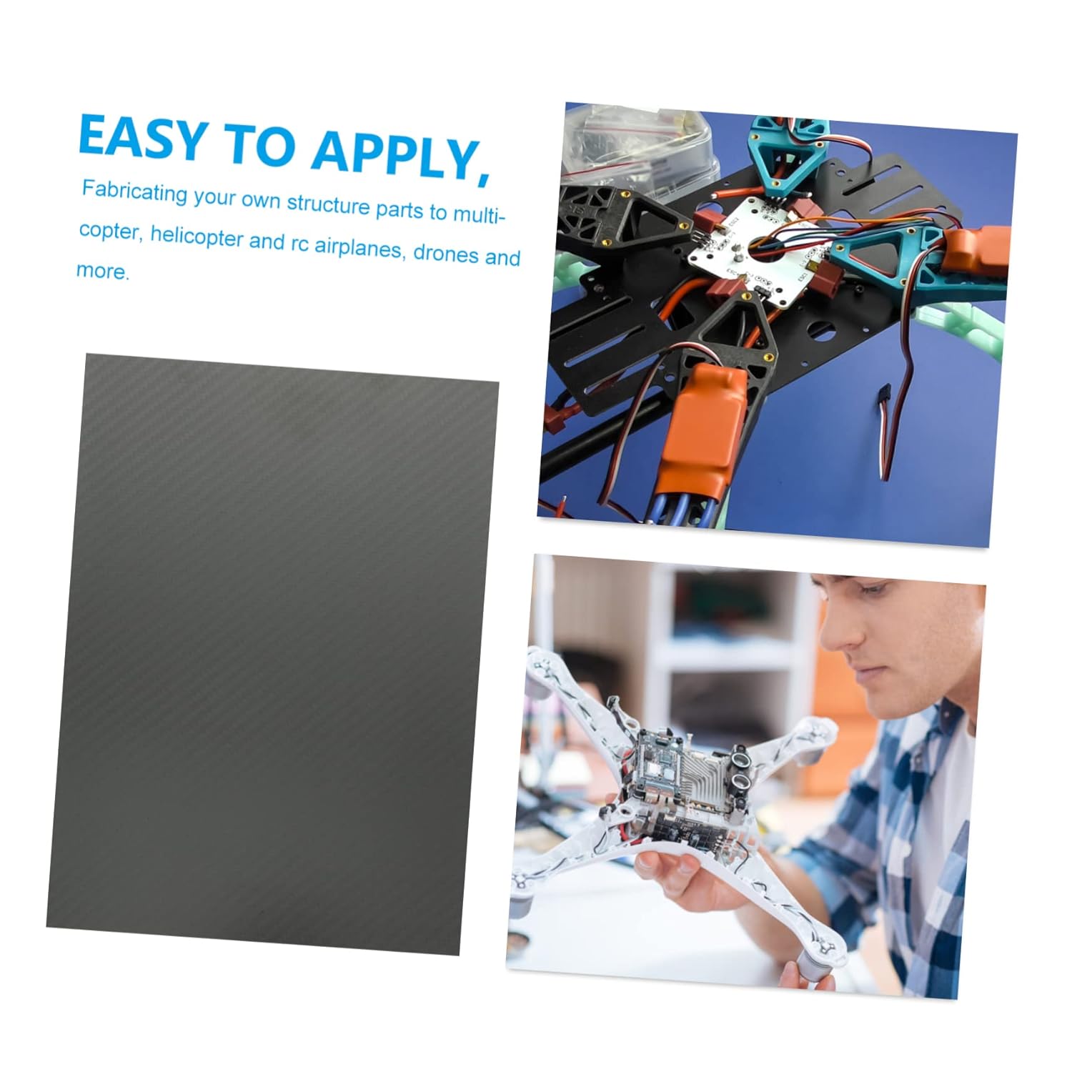 Package Include 2 x carbon fiber plate Characteristics - Material: carbon fiber carbon fiber - Size: 30.00X20.00X0.10cm/ 11.79X7.86X0.04inch carbon fiber board. - Features strong strength and light weight, easy to apply, take and store, you can feel the convenience of it 3k carbon fiber - Fabricating your own structure parts to multicopter, helicopter and rc airplanes, drones and more carbon fiber laminate. - The surface is twill pattern, glossy surface for safer and much more comfortable touching twill carbon fiber - , of burrs, safe to your delicate hands, you can use rest assured matte carbon fiber board. - Made of light weight carbon fiber materials for safe, practical and use for long time carbon fiber panel - ColorGreyGoods Informationcarbon fiber board The surface is twill pattern, glossy surface for safer touching.3k carbon fiber plate workmanship, not easy to tear or deform for better using.matte carbon fiber board It is specially applicable for multicopter, helicopter and rc airplanes, drones and more.twill carbon fiber plate This carbon fiber plate is very professional and practical