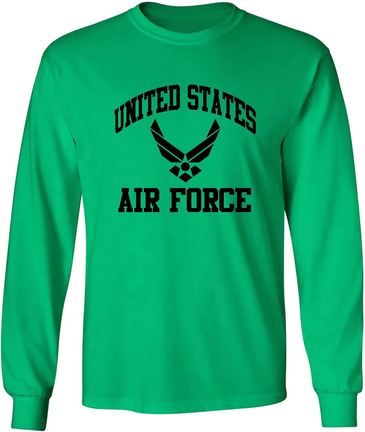 This military theme shirt features "US Air Force Wings" on the front on an Adult Long Sleeve T-shirt. Featuring a taped neck and shoulders for comfort and double-stitched sleeve and bottom hems for extra strength, our shirts are designed for both comfort and quality. Officially licensed by the United States Air Force. Printed in the USA on an imported garment.
